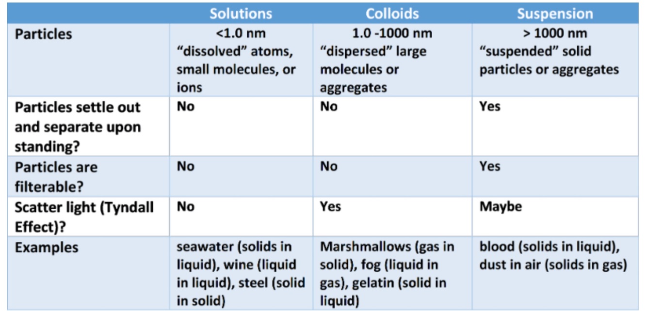 -larger particles dispersed in a medium are visible and form heterogeneous mixtures called suspensions.