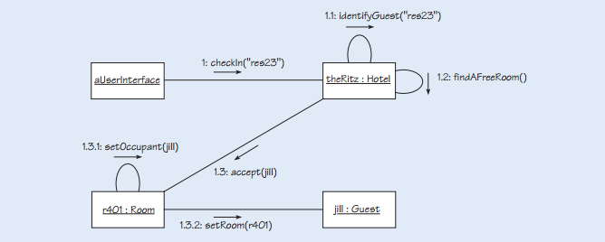 Communication diagrams emphasise the message traffic across links in a particular configuration of objects.