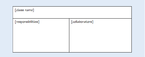A CRC (class-responsibility-collaboration) card is a way of modelling how classes interact.