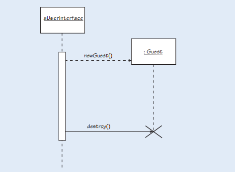 How do you represent the creation and deletion of an object in a sequence diagram?