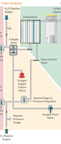 pipeline pressure 50psi is about the same as in the intermediate system - but since its a smidge higher, this causes the machine to preferentally use the pipeline system over the cylider if the o2 cylinder is accidentally left open