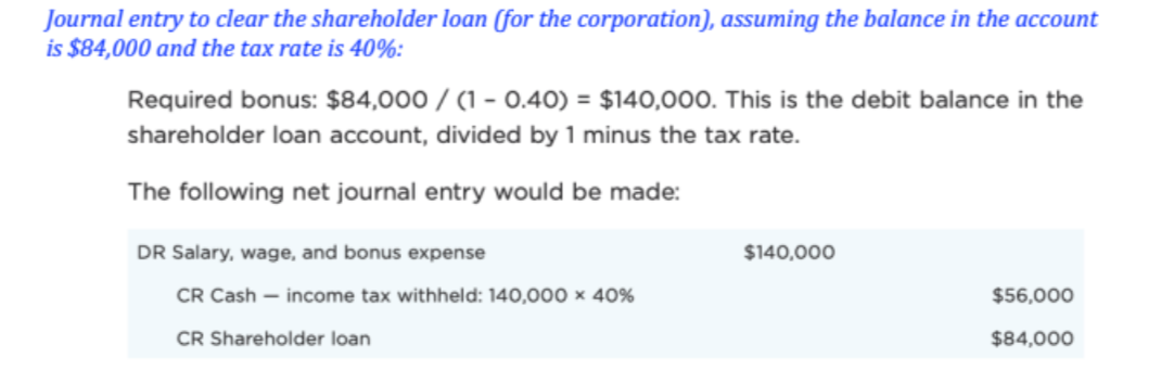 -Salaries: instead of paying the after-tax amount to the SH, the amount is cr to the SH loan
