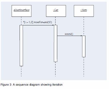 To get the horn to sound five times for every forward movement in the sequence diagram, you would add an iteration clause to the second, nested message: