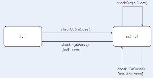 Look at Figure 20, which only considers whether or not an object of class Hotel is full. Why are there no guards on the transitions for the checkOut(aGuest) event?