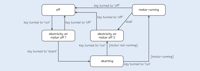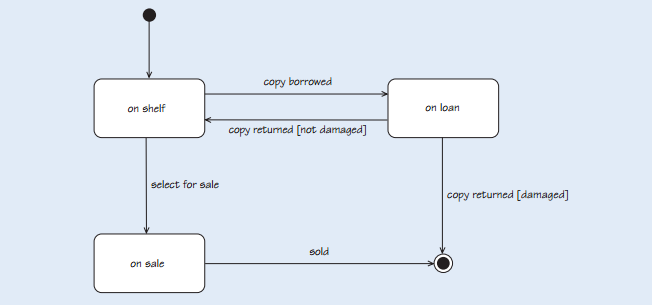 A state machine is a model that shows how an object changes from state to state in response to events.