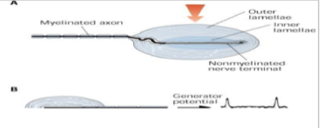 Causing lamina surrounding nerve endings to change - open Ca2+ channels to depolarise neuron - reach threshold, travels towards Aβ fibre to CNS