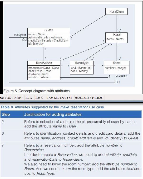 The make reservation use case (UC1) suggests several attributes, as shown in Table 8.