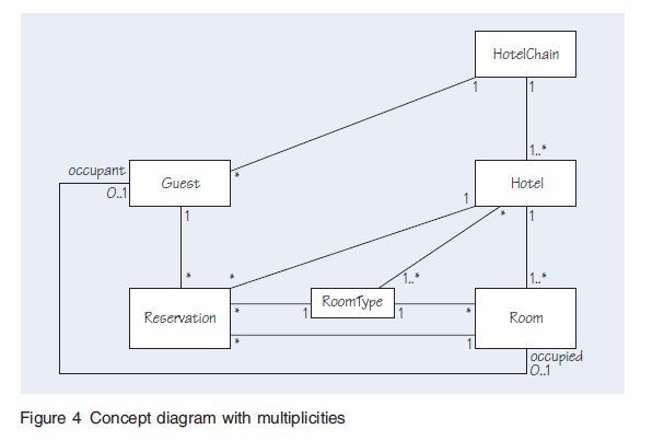 We choose to add RoomType as a concept rather than as an attribute, since, as we will see later, it participates in a number of associations. Sometimes decisions like this can simply be based on insight, whereas in other cases they will be taken following further iteration.
