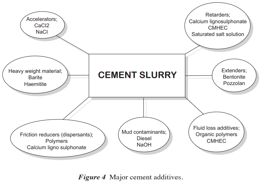 Seal material → between casing and borehole →provides barrier to the flow of fluids from, or into the formation behind the casing and from, and into, the subsequent hole section.
