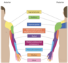 * Median = anterior and medial * Ulnar = posterior and medial * Radial = posterior and lateral * Musculocutaneous = anterior and lateral (resides outside neurovascular bundle)