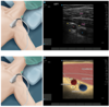 rocking transducer towards patient’s head while compressing tissue caudally makes it easier to see the needle angle during insertion