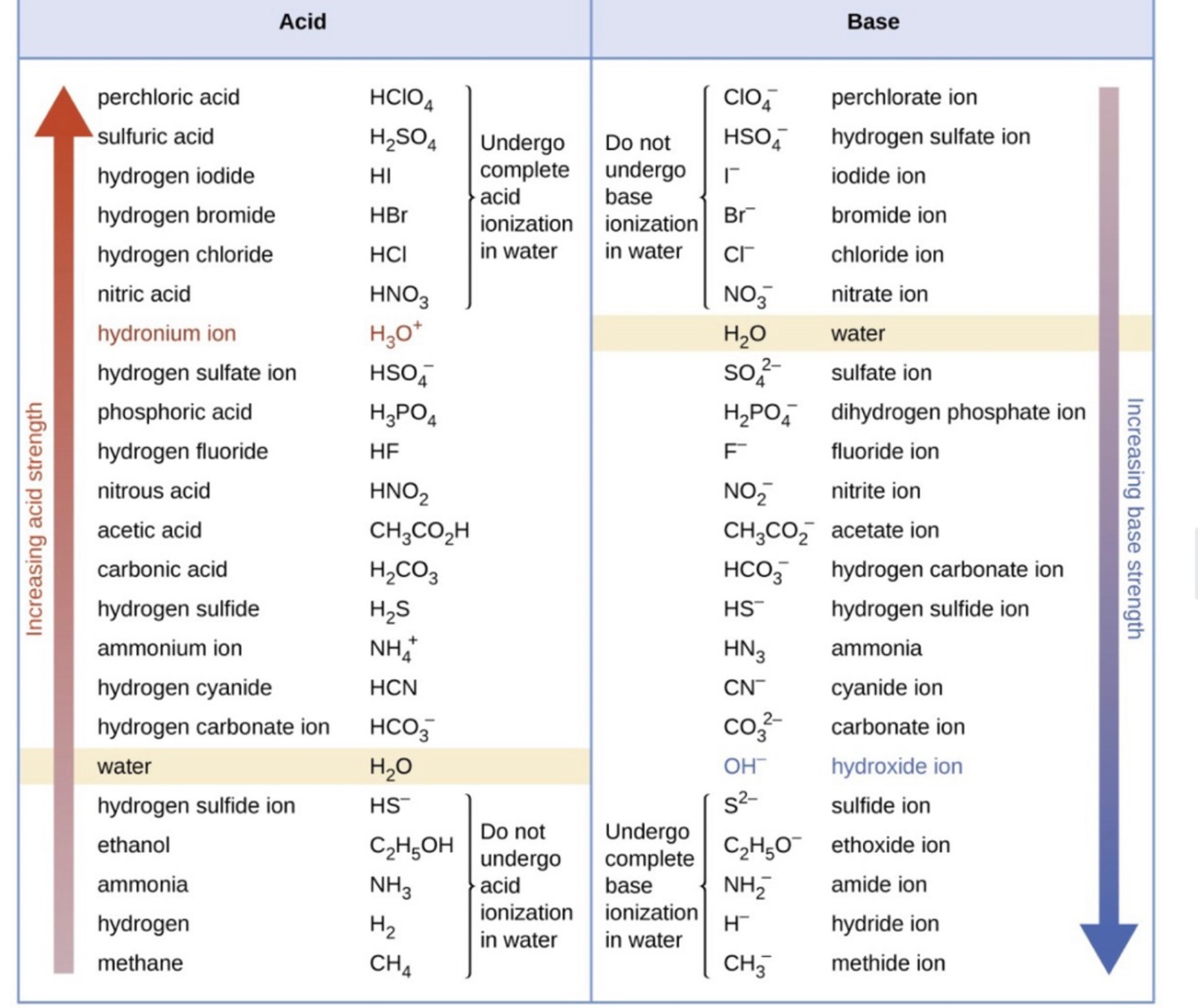 Acid and base in pure water