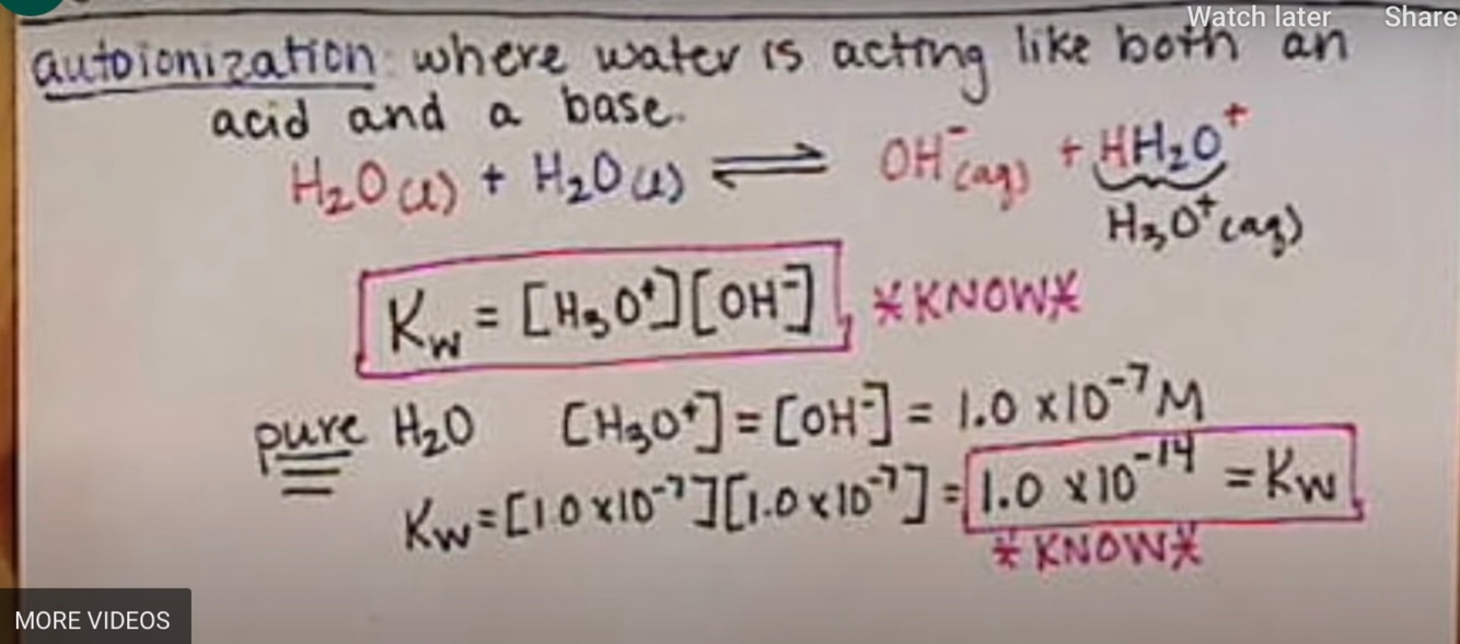 Water acting as both an acid and a base when by itself
