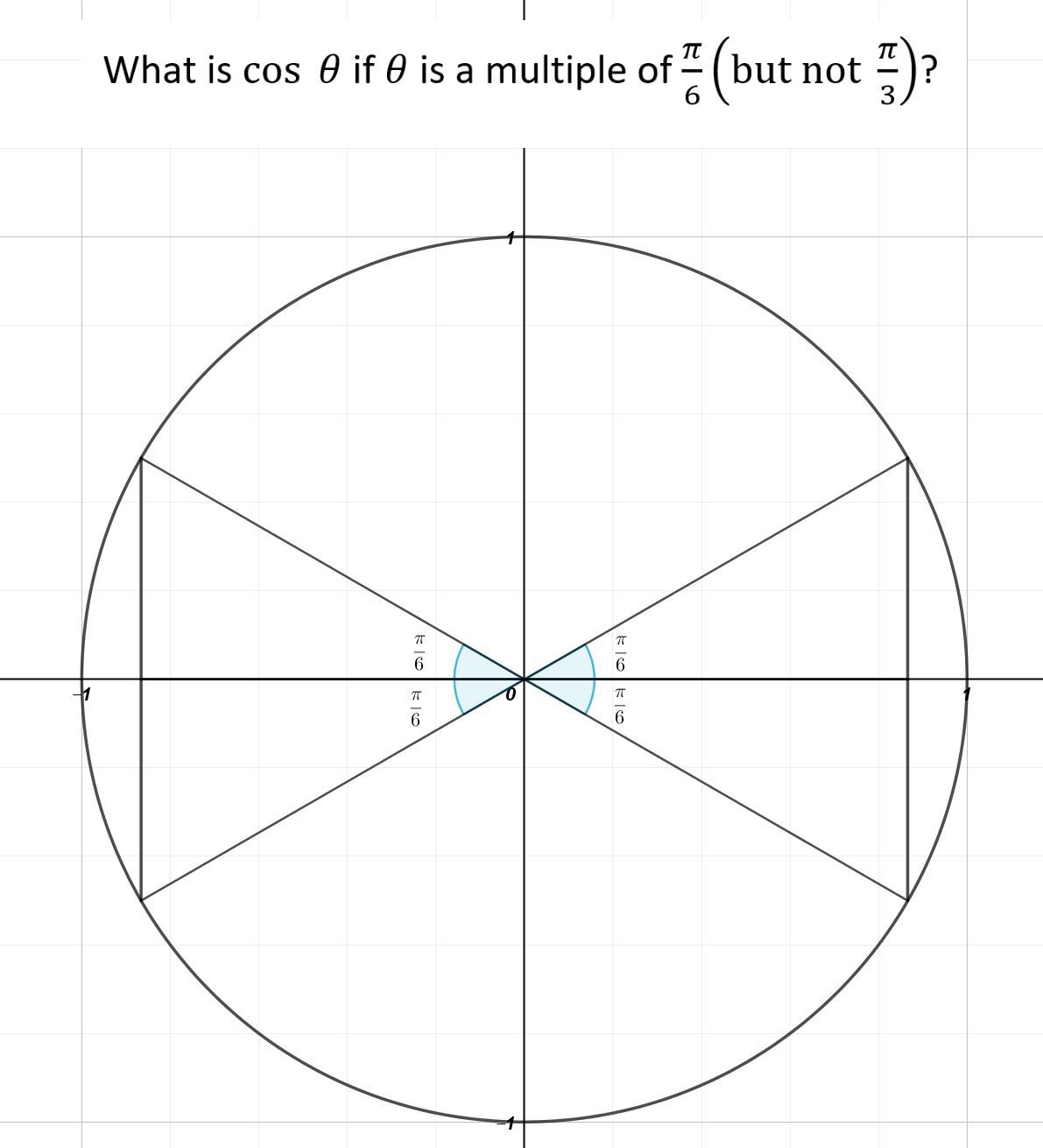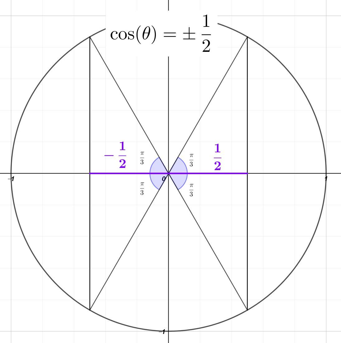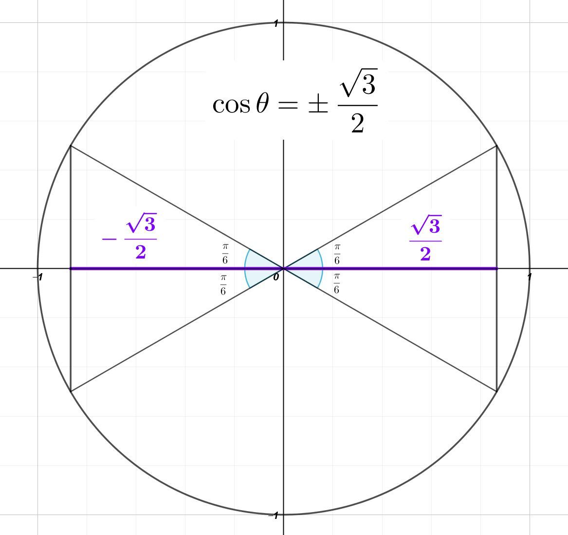 Two angles have the same cosine when they have the same x-coordinate. So, this is the same for quadrants 1 & 4 or for quadrants 2 & 3.