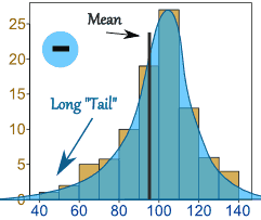 Also known as negatively skewed, the bulk of the data items are clustered on the positive end of a graph with the long tail to the left.
