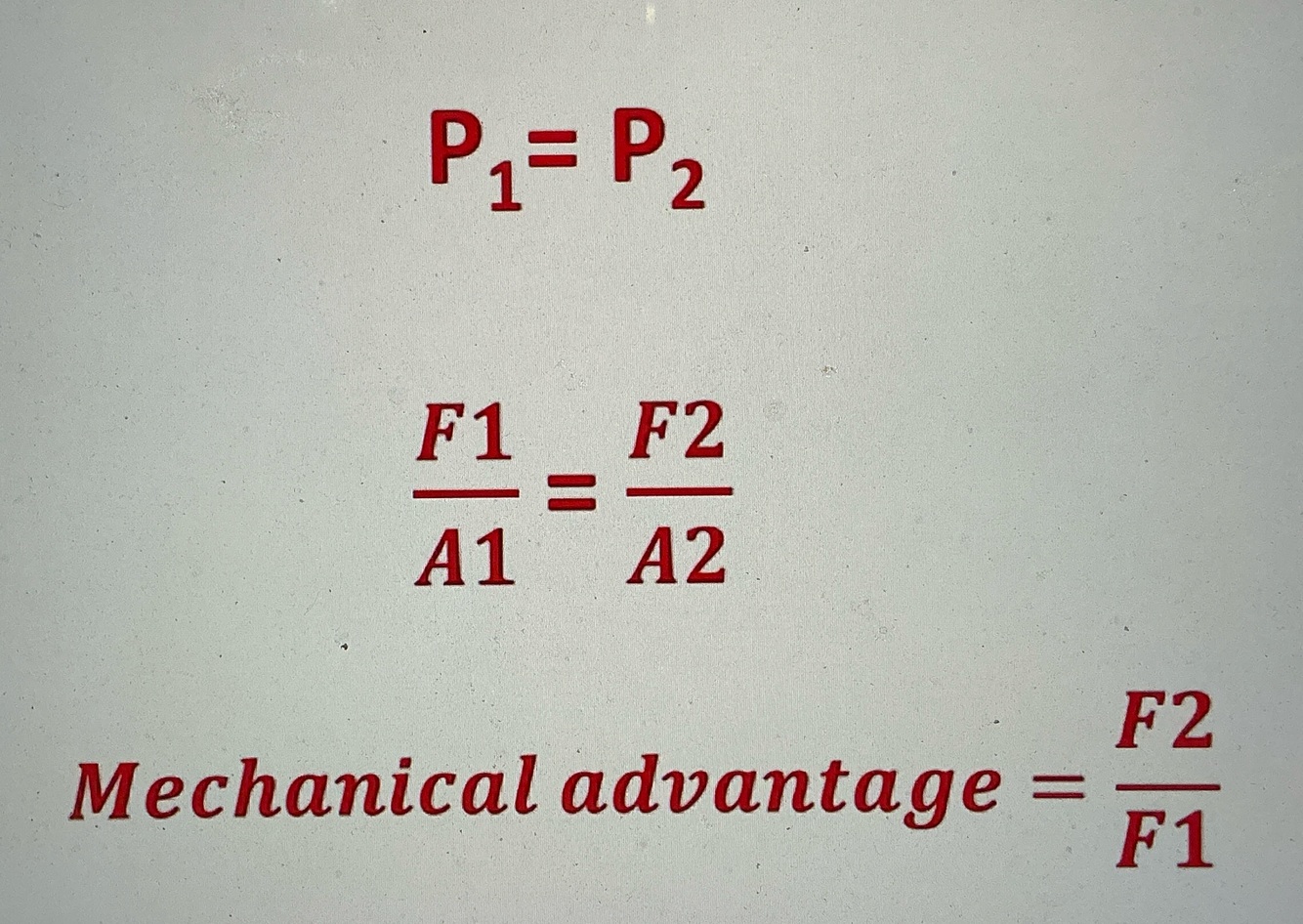 Pascals principle formula, and what is echanical advantage of the system?