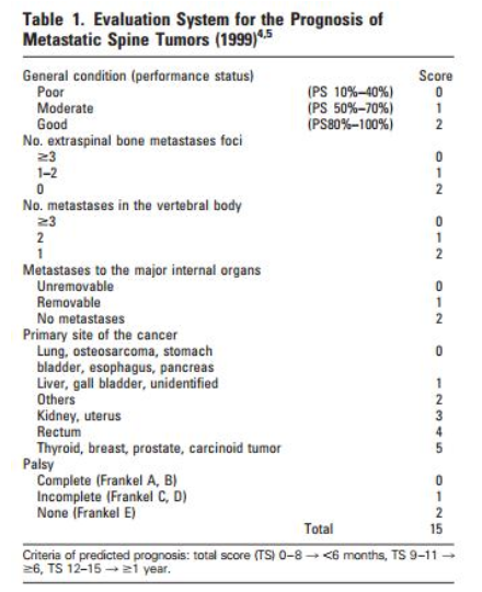 Are there any scoring systems to help decide prognosis of spinal mets and so tx?