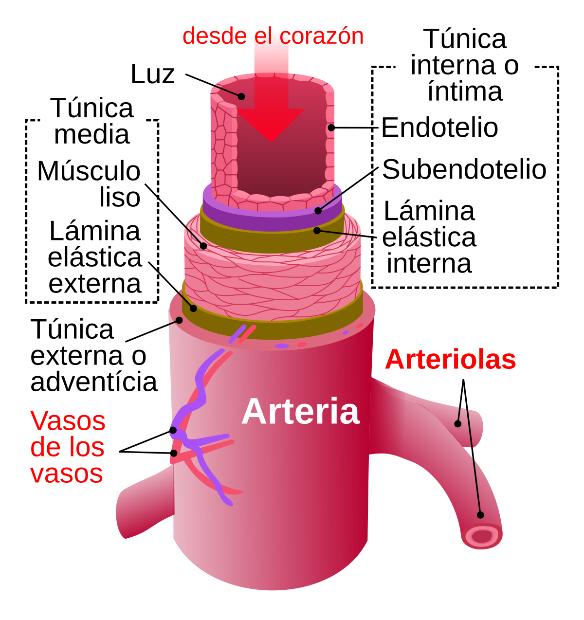 - Subendotelio: Tejido conectivo denso y tejido conectivo laxo