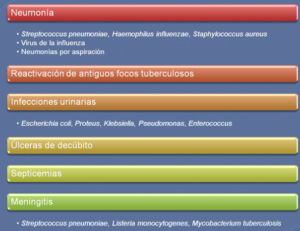 Los adultos mayores son inmunocomprometidos fisiológicos, sumando eso a alteraciones morfológicas, enfermedades obstructivas y mayores hospitalizaciones -> aumenta el riesgo de infecciones.