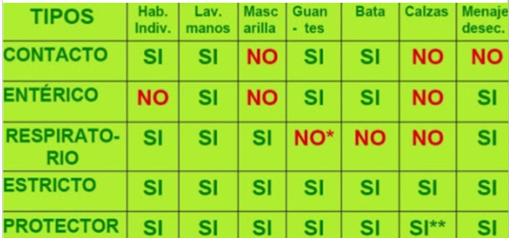 -Respiratorio( barbijo antes de entrar, pacientes con meningitis, TBC)
