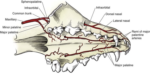 Dorsal, lateral and major palatine arteries