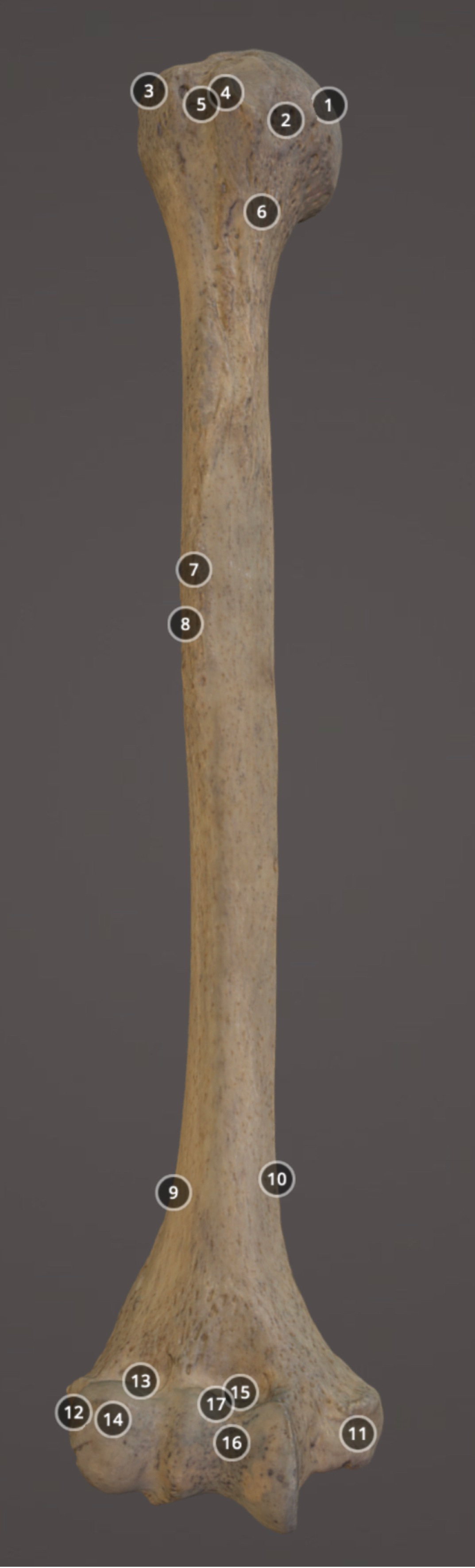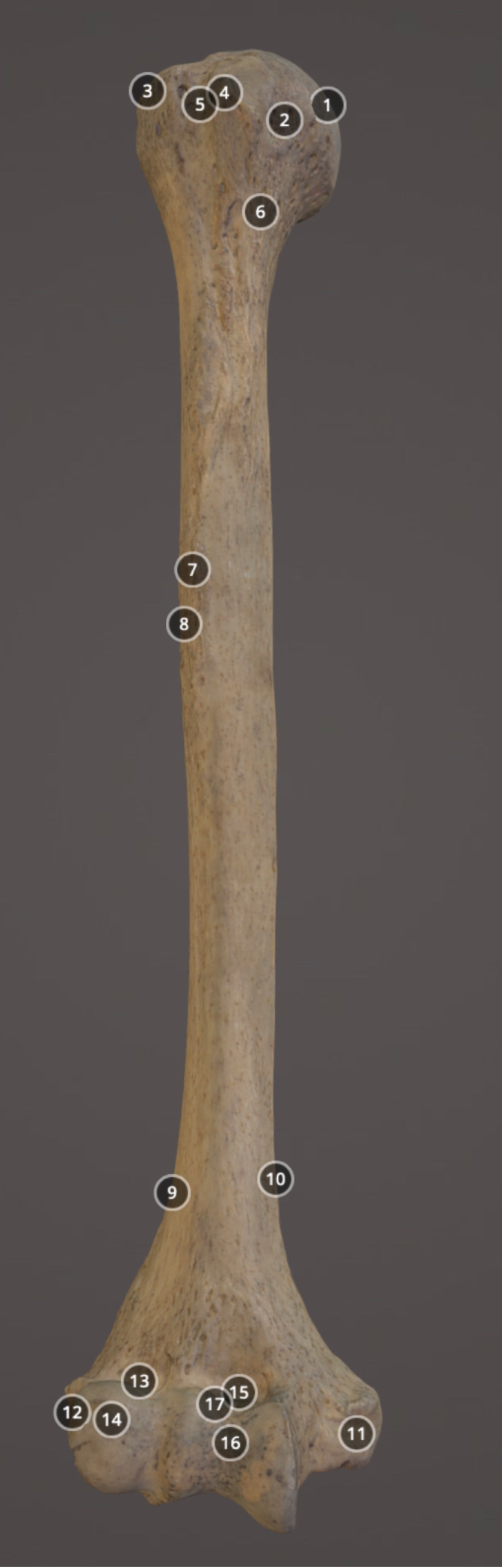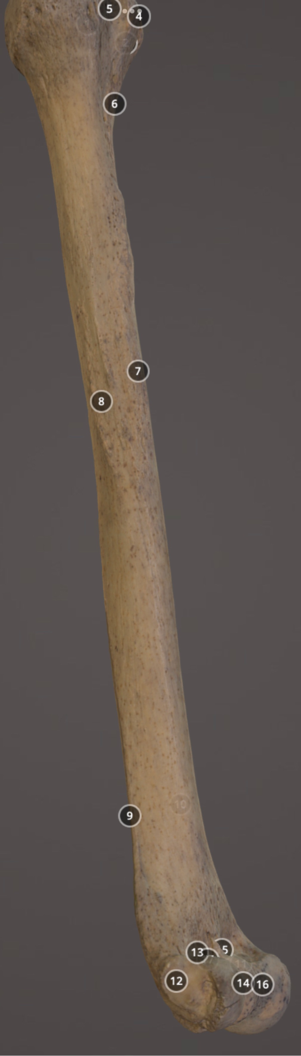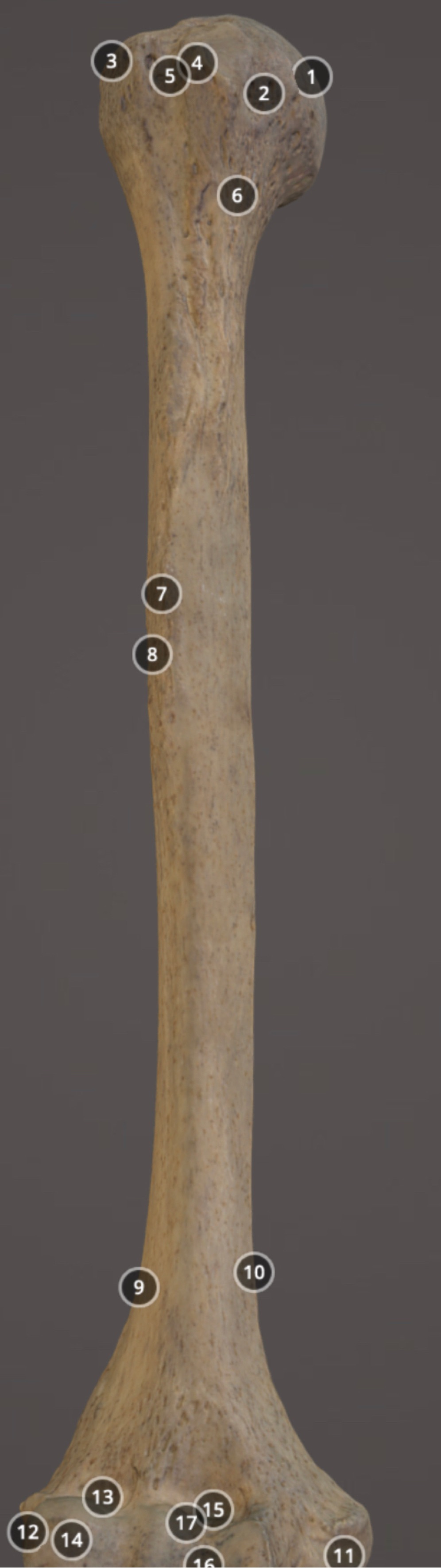 Muscle attachment on distal anterior diaphysis of humerus