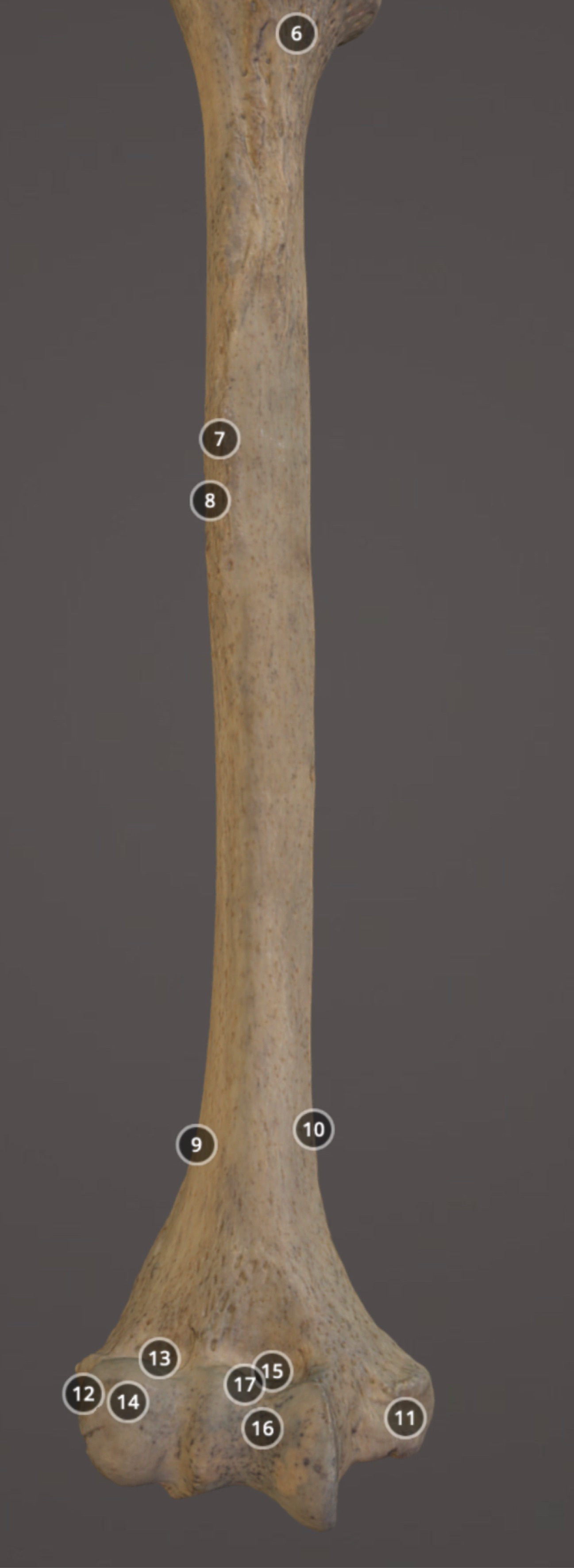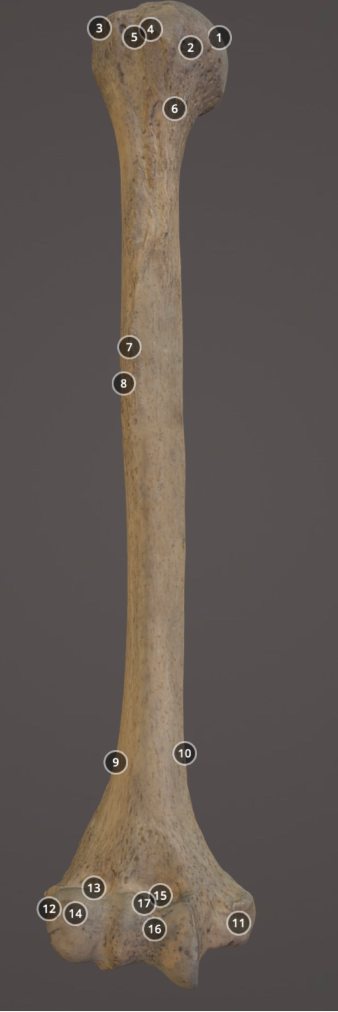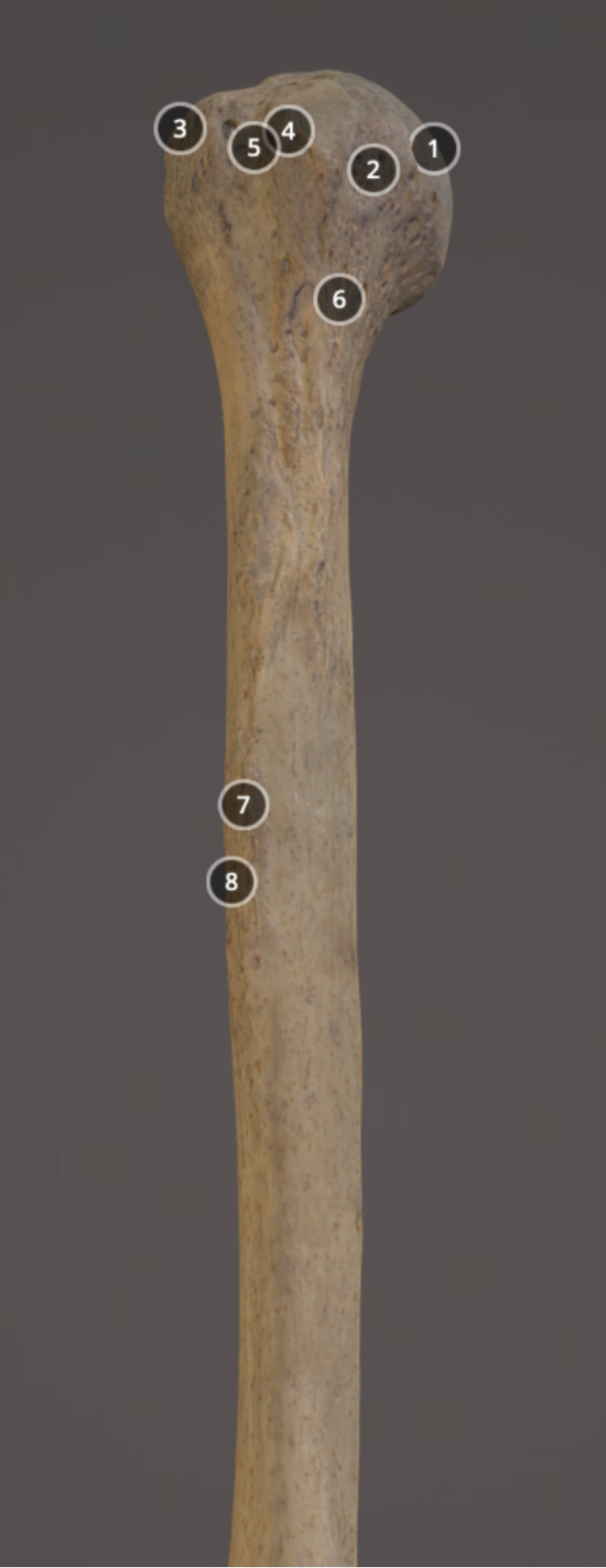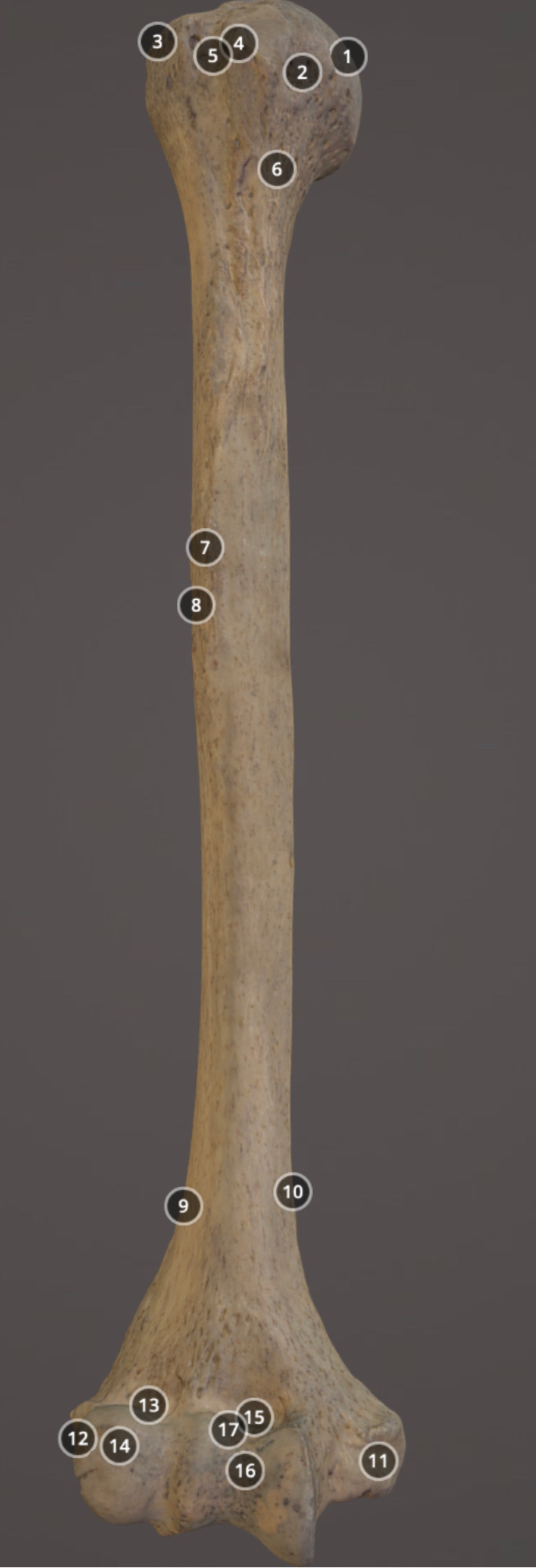 Muscle attachment on distal anterior diaphysis of humerus