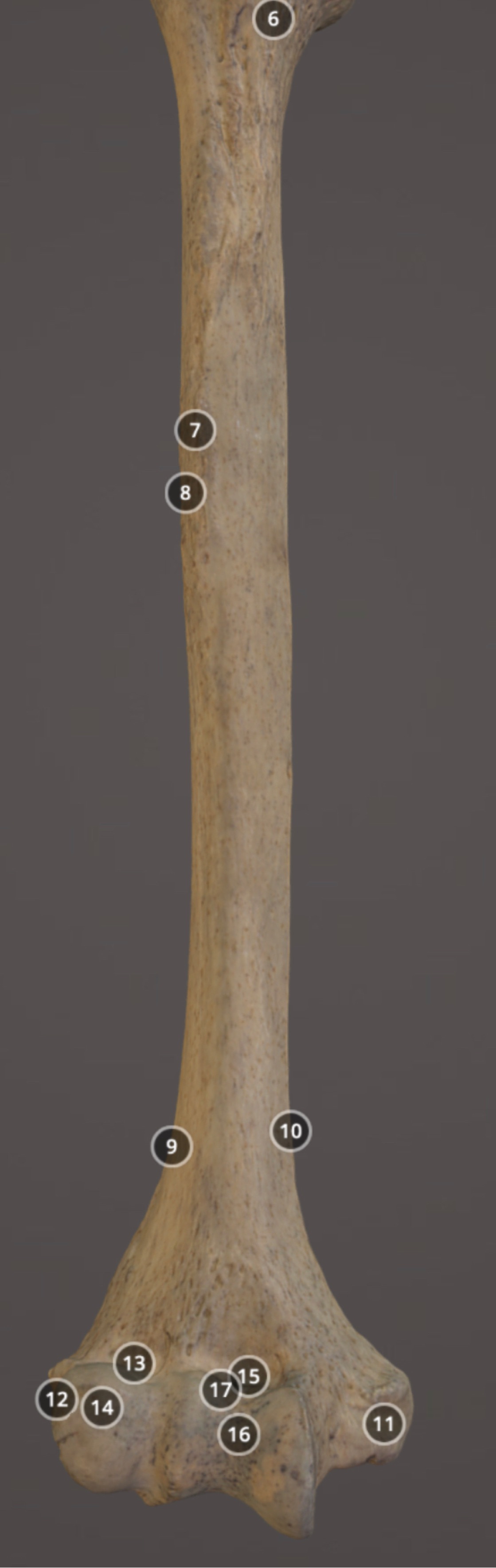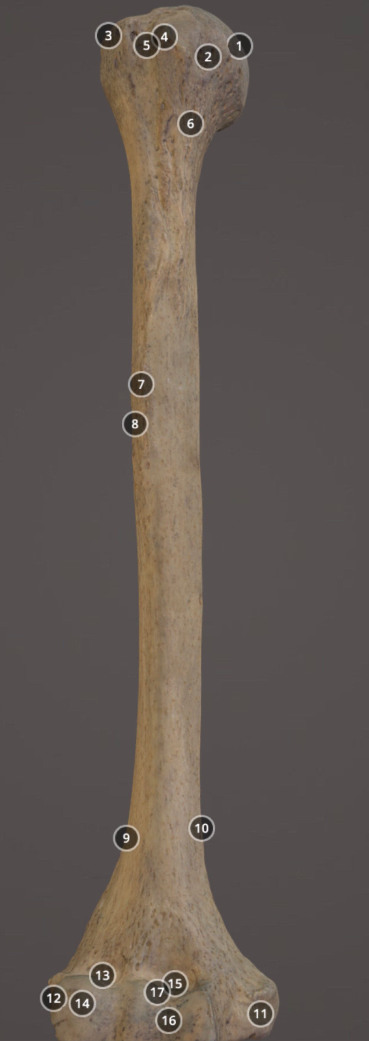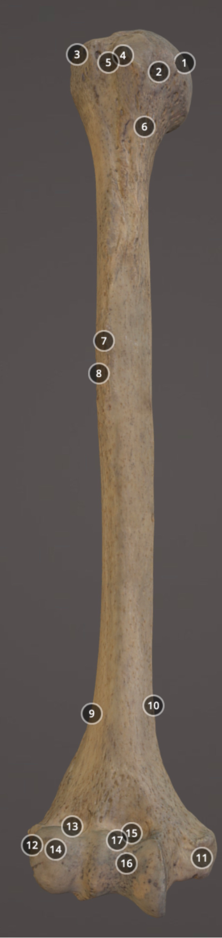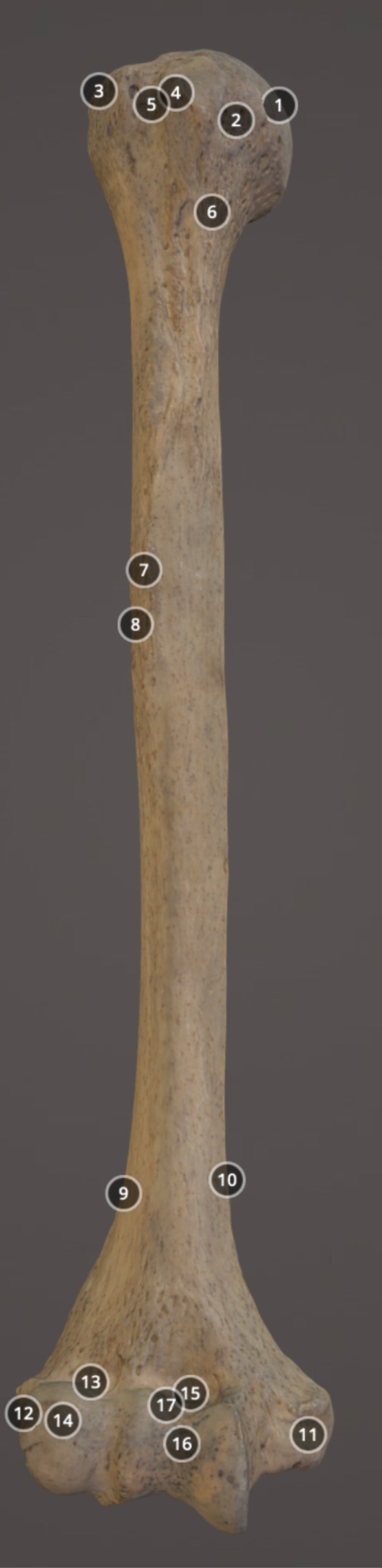 Muscle attachment on posterior diaphysis of humerus