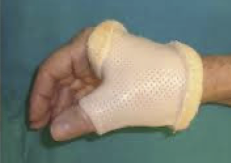 Thumb in abduction to promote function and IP joint clearing the thenar crease