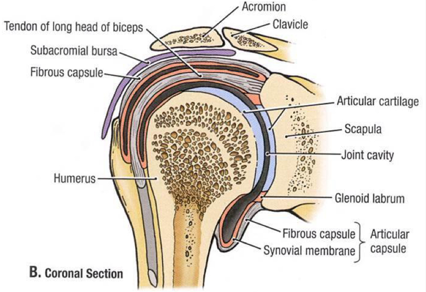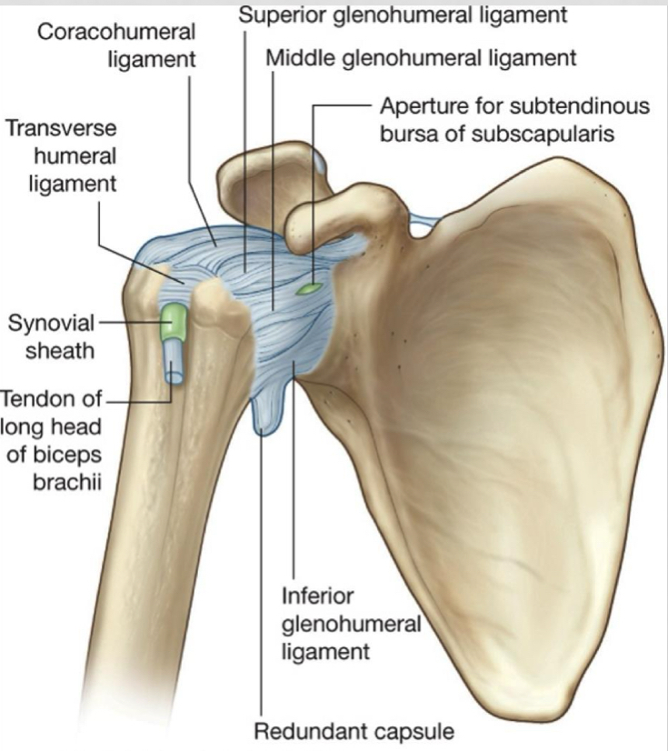 Attached medially to the margin of the glenoid cavity and laterally to the anatomical neck of the humerus. It encloses the long head of the biceps brachii to the Supraglenoid tubercle of the Scapula.