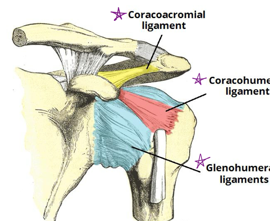 Protective structure between the acromion and coracoid process with the coracoacromial ligament spanning between them.