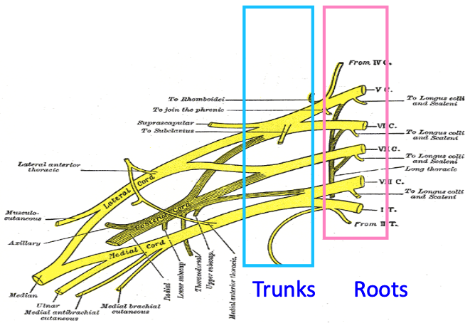 identify the trunks of the brachial plexus AND their roots