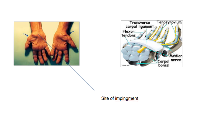 Where is the site of impingement for Carpal Tunnel/Median Nerve?