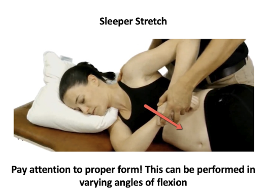 Posterior capsule stretching: sleeper stretch