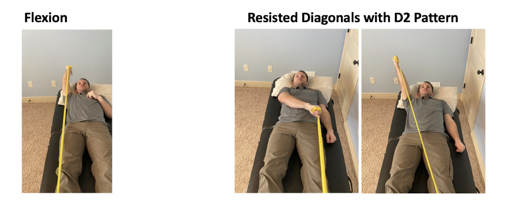 Supine or standing flexion and diagonals with TheraBand