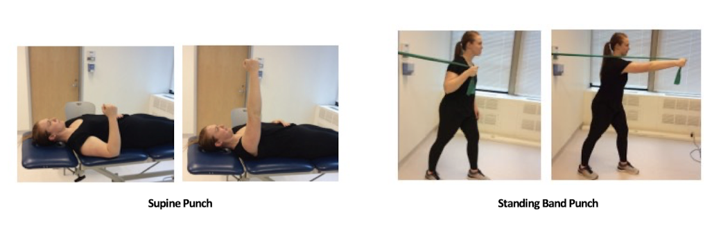 serratus strengthening (supine punch, standing band punch)