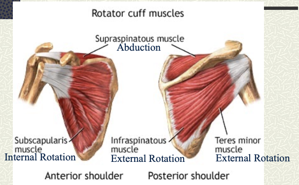 What is the primary function of the rotator cuff? Describe and locate the muscles that make up the rotator cuff