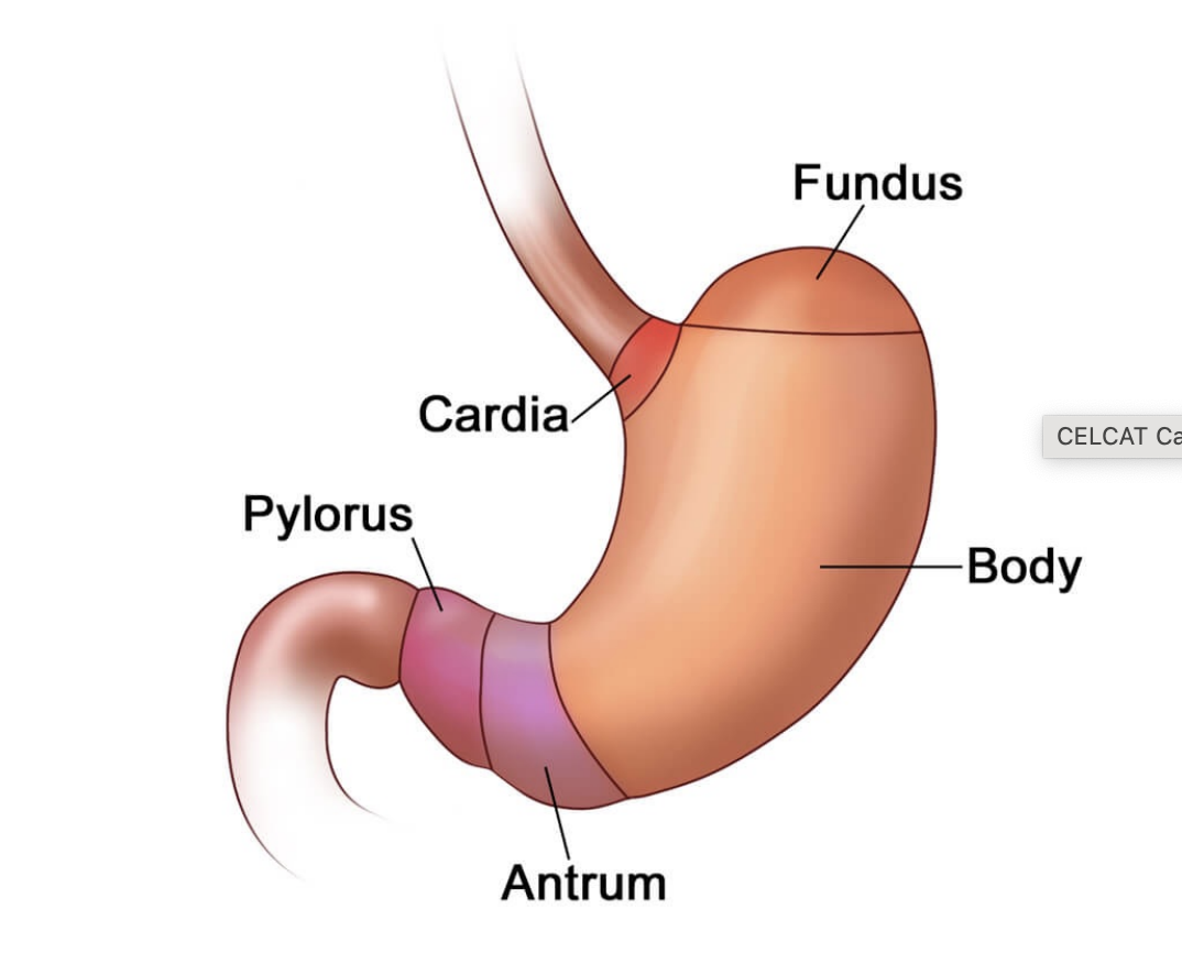 Recall the different anatomical parts of the stomach