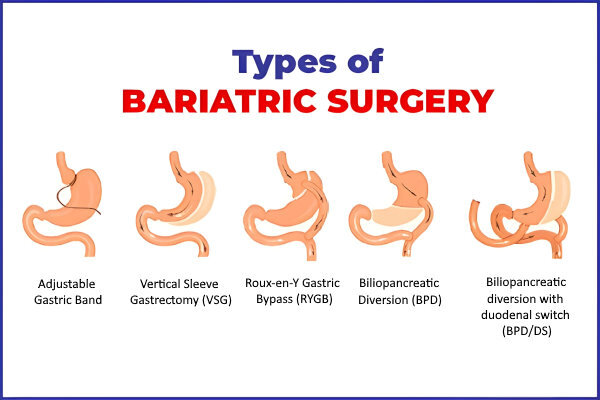 Roux-en-Y gastric bypass: a gastric pouch is formed and connected to the jejunum. Patients achieve greater and more longterm weight loss than gastric banding.