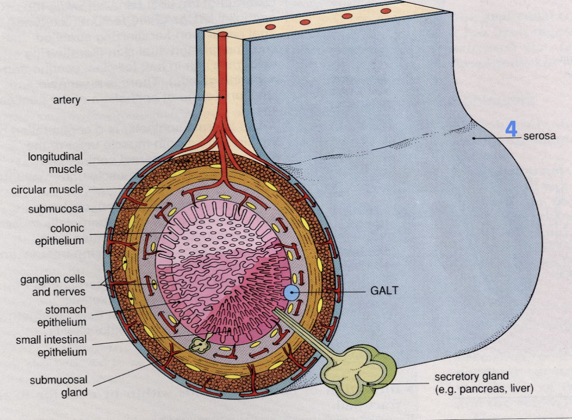 What layer of gut wall is the colonic epithelium?