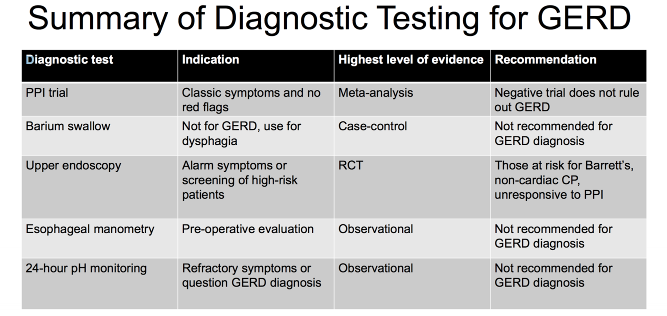 Summary of Diagnostic Testing for GERD