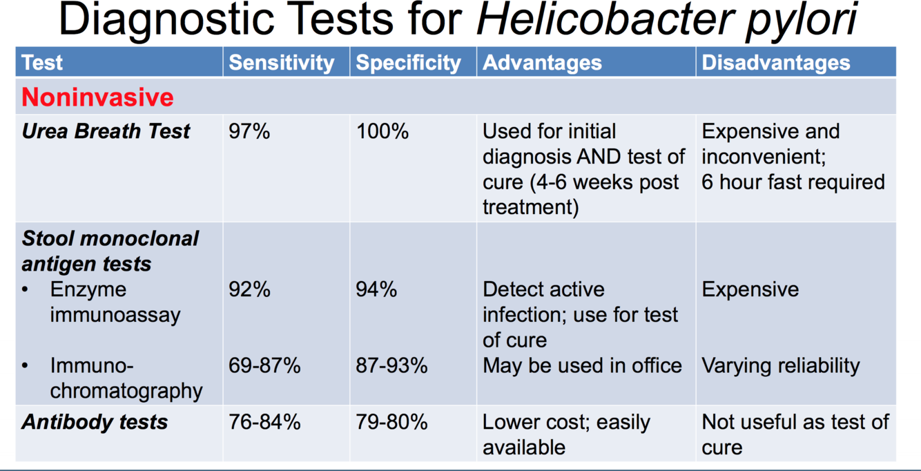 Diagnostic Tests for Helicobacter pylori
