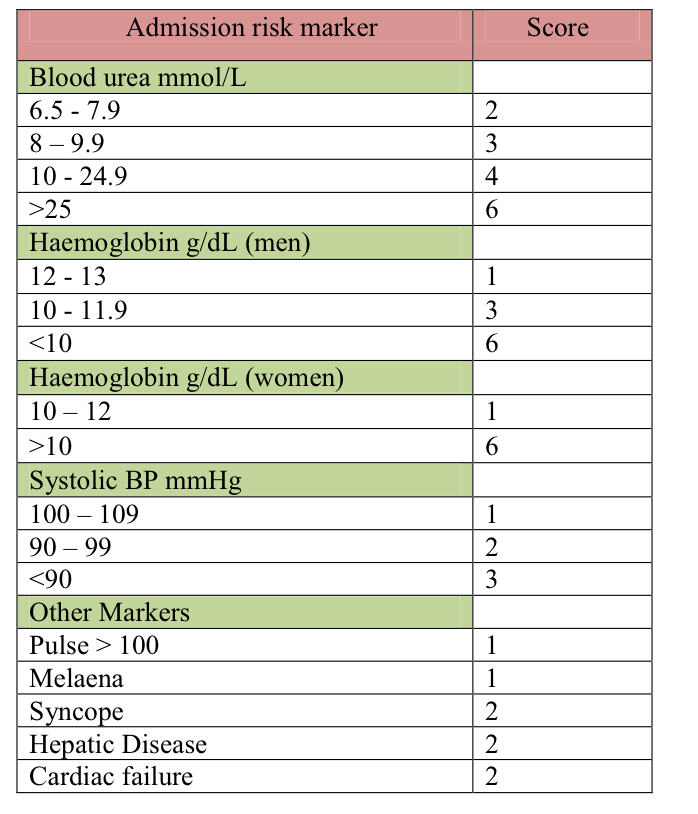 It predicts the risk of death and rebleeding from an upper GI bleed.