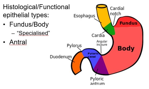 What are the parts of a normal stomach?