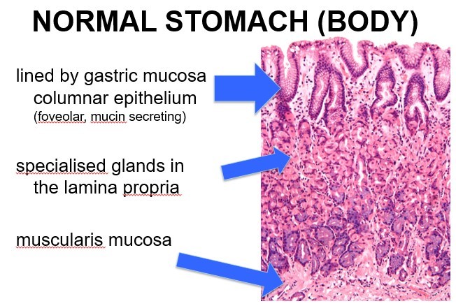 •Re-epithelialisation by metaplastic columnar epithelium usually with goblet cells