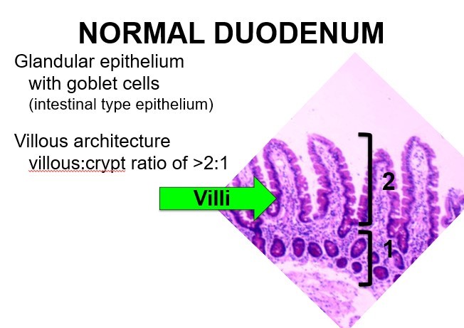 What is normal duodenal epithelium?