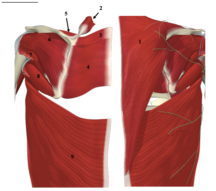 Middle part of deltoid Supraspinatus Trapezius Serratus anterior