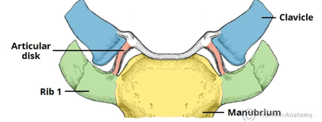 Synovial joint between clavicle, manubrium of sternum and part of the 1st costal cartilage
