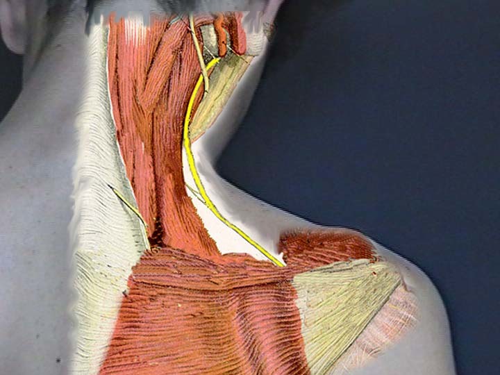 goes from medial boarder of scalpula to about c1
