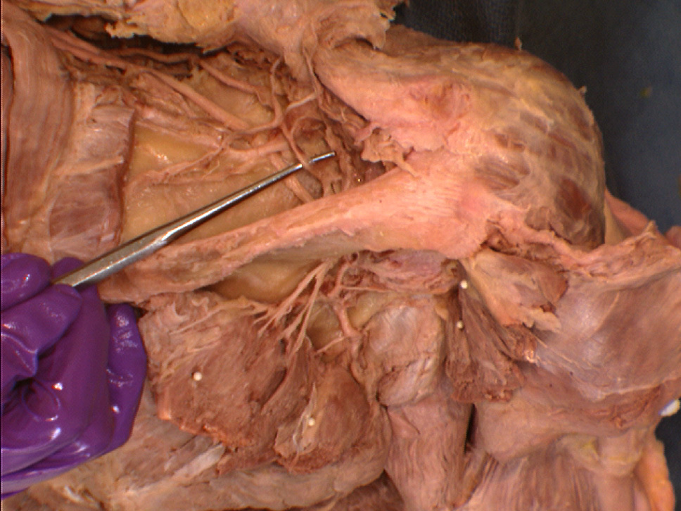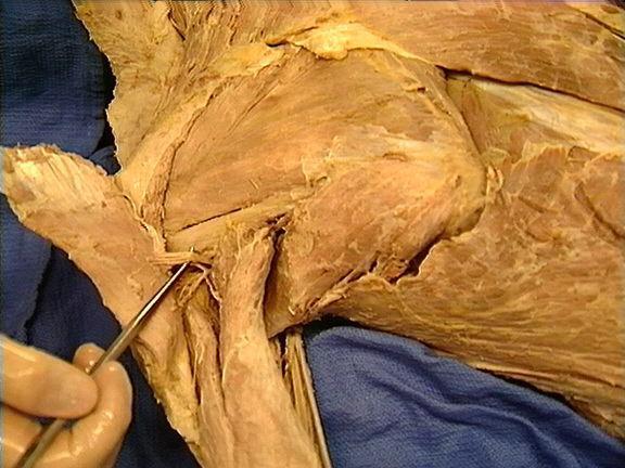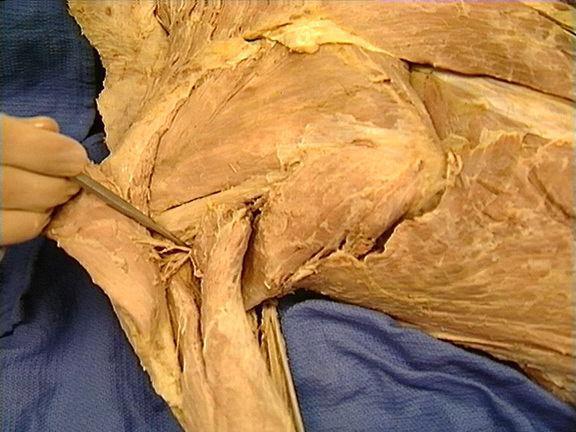 proximal to the teres major, attaches to the lateral part of the scapula, goes to the greater tubercle of the humerus